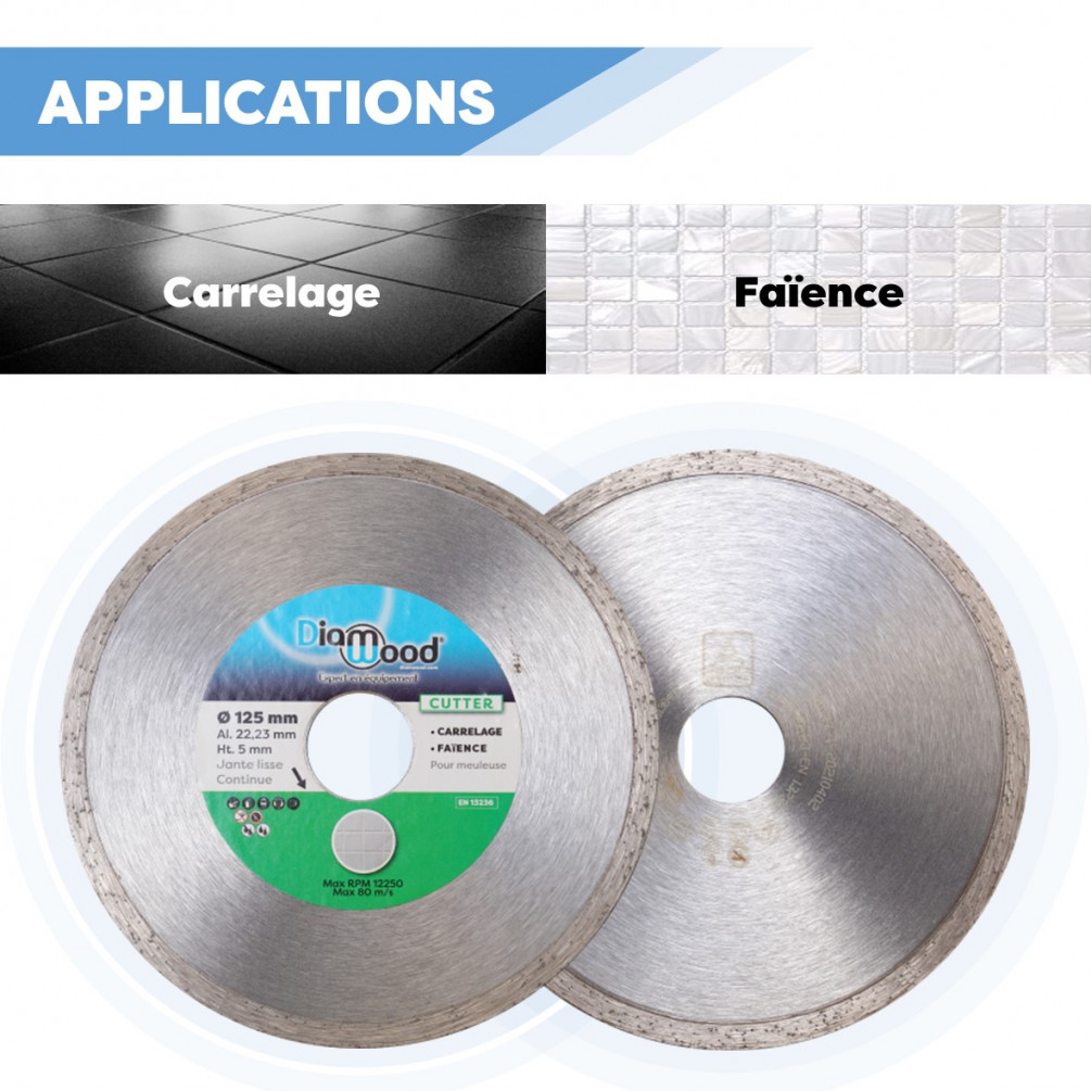 Disque diamant 125 x Al. 22,23 x Ht. 5 mm carrelage, faïence - CUTTER - Diamwood