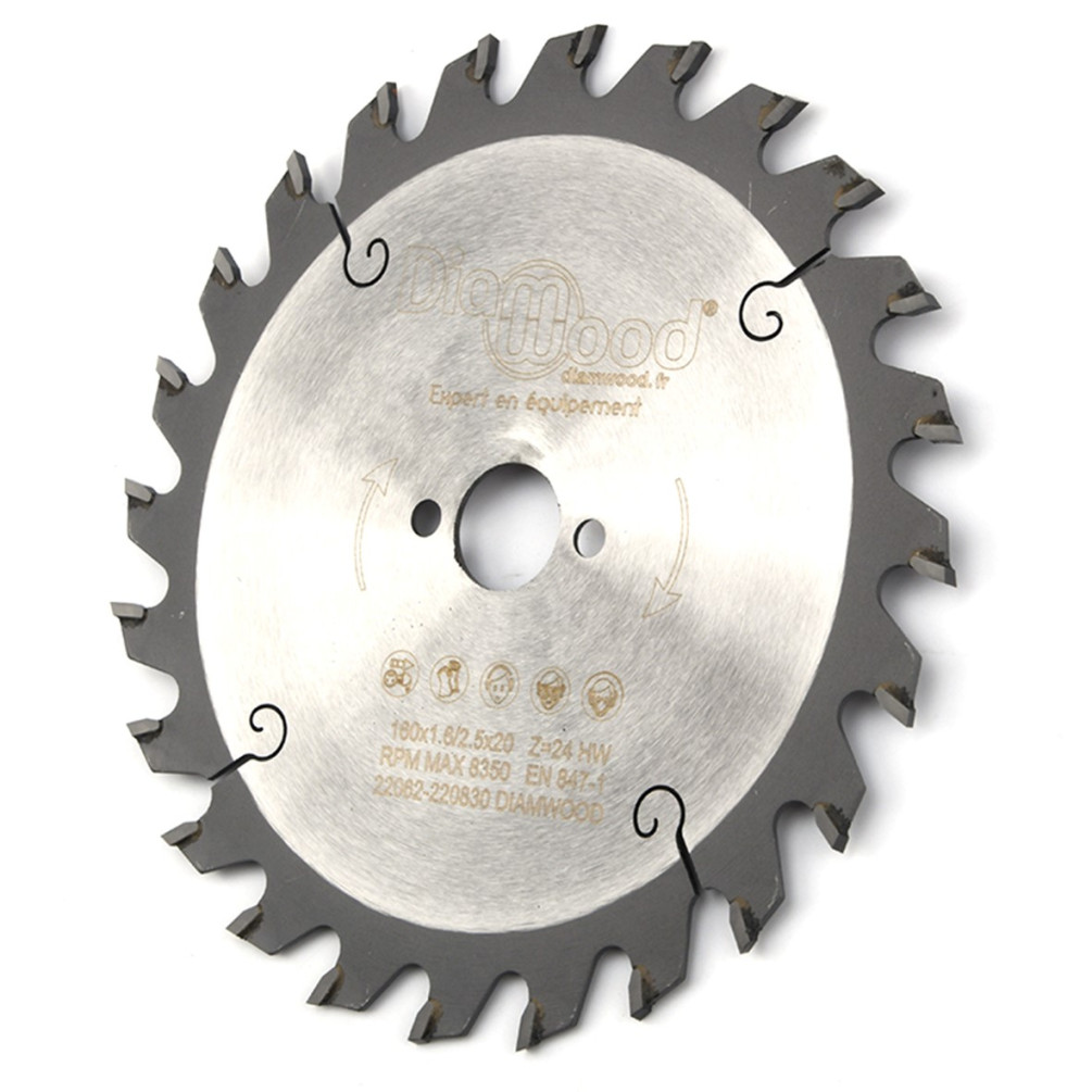 Lame de scie circulaire portative HM débit D. 160 x Al. 20 x ép. 2,5/1,6 mm x Z24 Alt pour bois - Diamwood