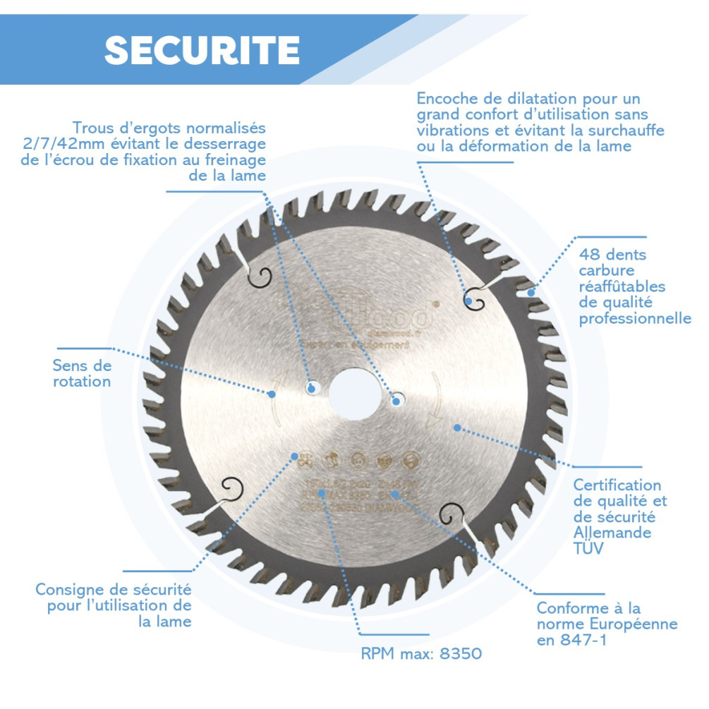Ce produit répond aux normes en vigueur (EN 847-1), le tout à prix d'usine afin d'éviter les intermédiaires. Utilisez ce produit selon les consignes de sécurité et normes européennes machines en vigueur.