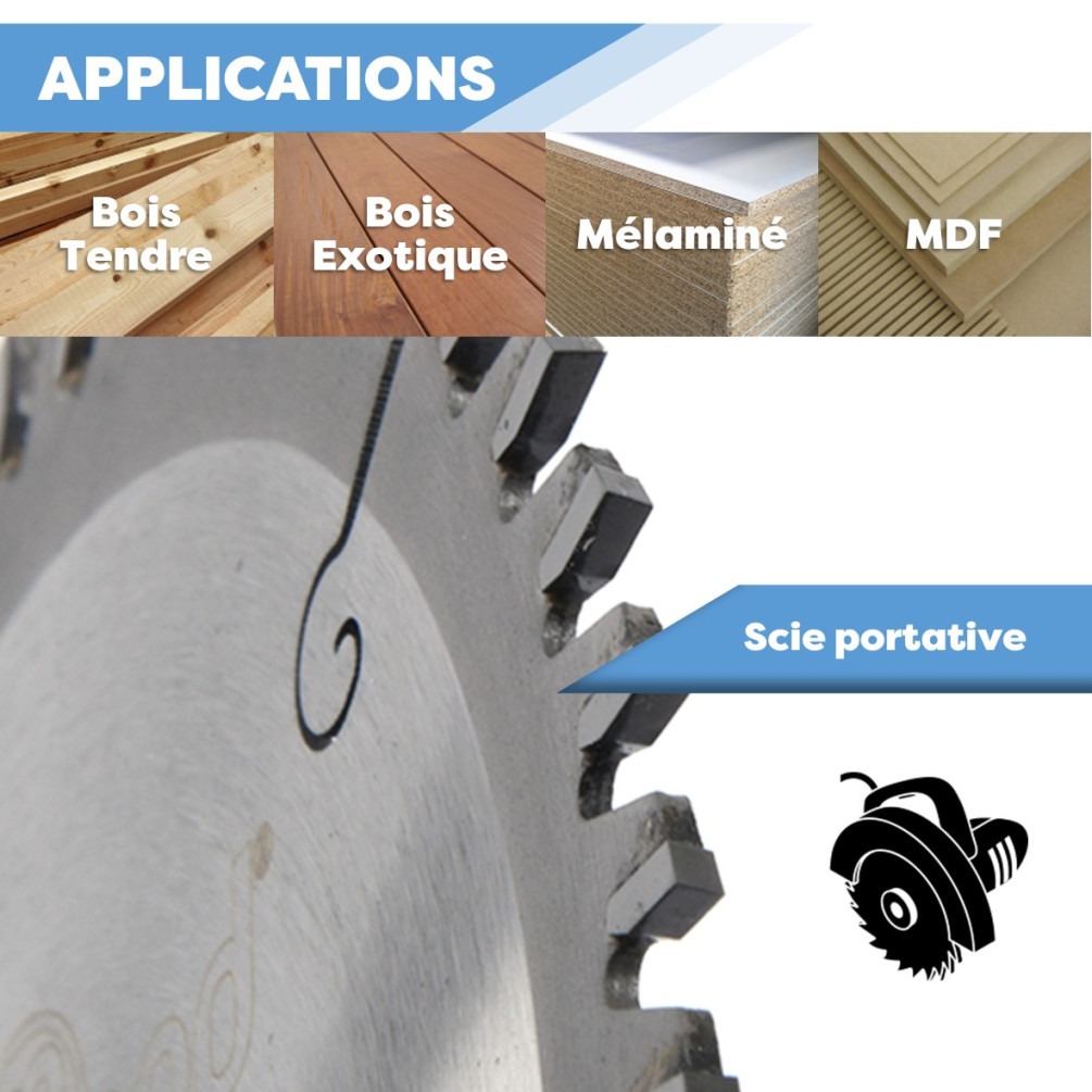 Lame de scie circulaire carbure semi-professionnelle qui convient à la coupe du bois tendre, bois exotique, des panneaux mélaminés, du MDF. Cette lame à denture alternée est souvent utilisée sur les machines de type : Scie circulaire portative. Utilisation : Universelle - Finition.