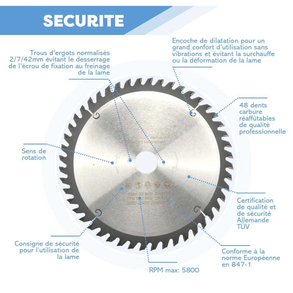 Ce produit répond aux normes en vigueur (EN 847-1), le tout à prix d'usine afin d'éviter les intermédiaires. Utilisez ce produit selon les consignes de sécurité et normes européennes machines en vigueur.