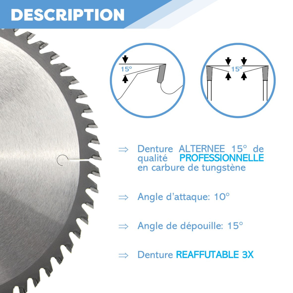 - Type de denture : Alternée 15°.