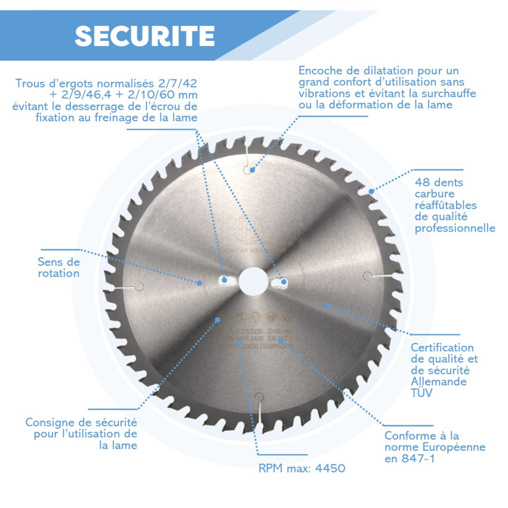 Ce produit répond aux normes en vigueur (EN 847-1), le tout à prix d'usine afin d'éviter les intermédiaires. Utilisez ce produit selon les consignes de sécurité et normes européennes machines en vigueur.