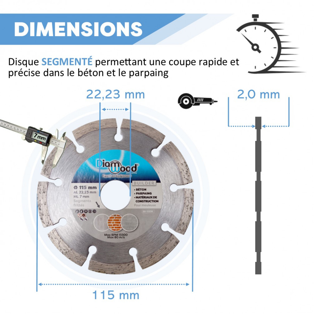 Caractéristiques techniques du disque diamant BUILDER D. 115 mm Diamwood