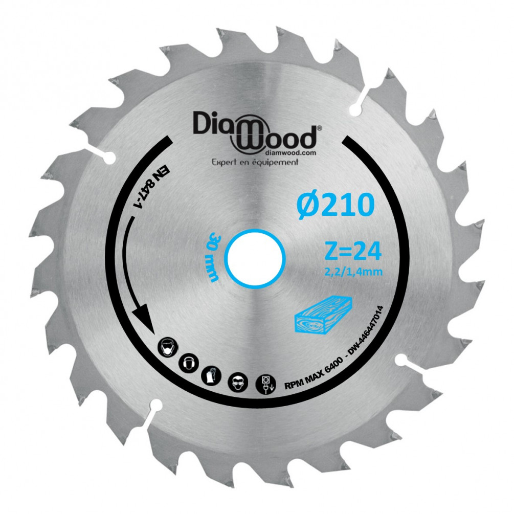 Lame de scie circulaire portative HM débit D. 210 x Al. 30 x ép. 2,8/1,8 mm x Z24 Alt pour bois - Diamwood