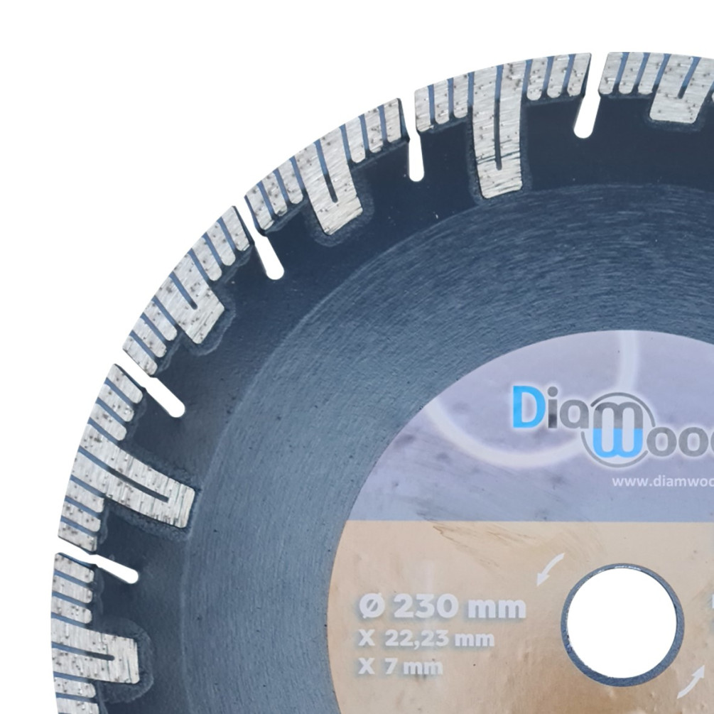 Disque diamant turbo 230 x Al. 22,23 x ép. 2,6/1,8 mm x Ht. 7 mm béton, margelle, tuile, carrelage, granit - TURBOCUT - Diamwood