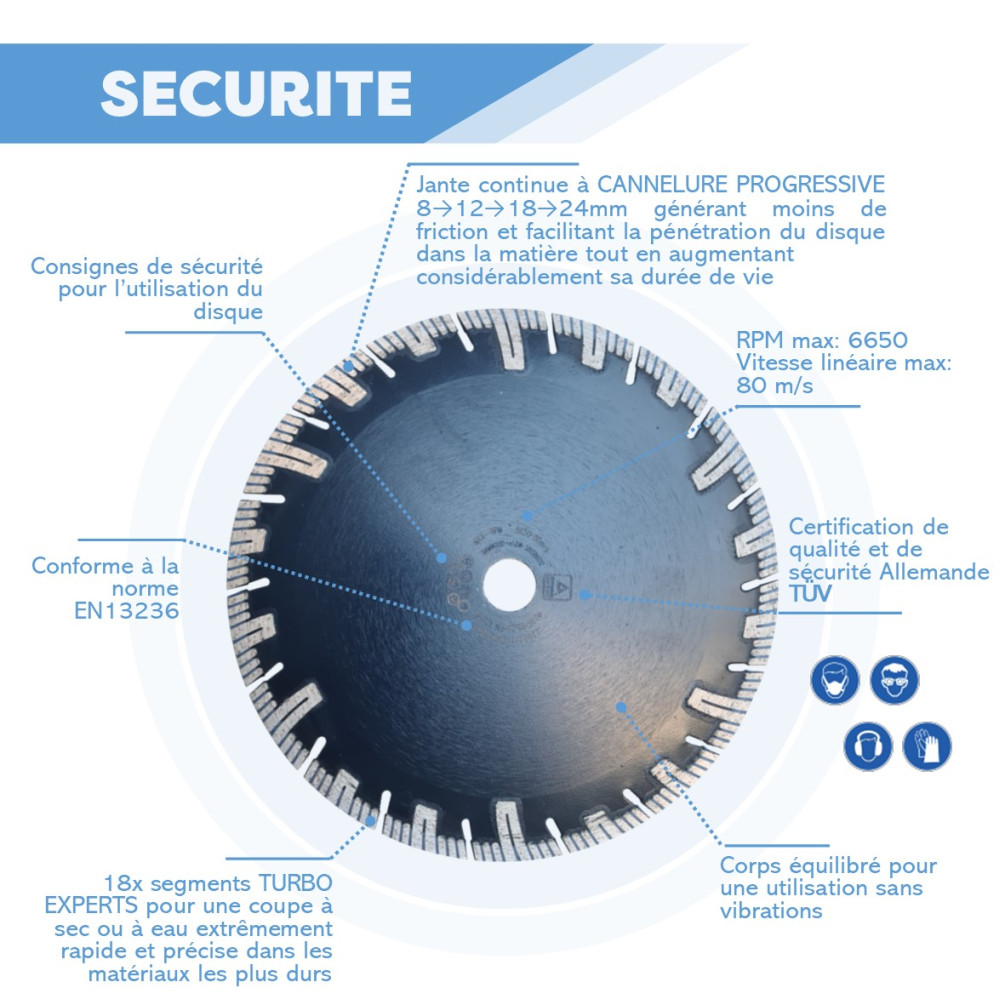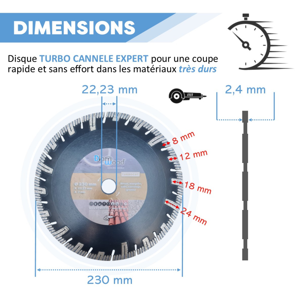 Caractéristiques techniques du disque diamant TURBOCUT D. 230 mm Diamwood