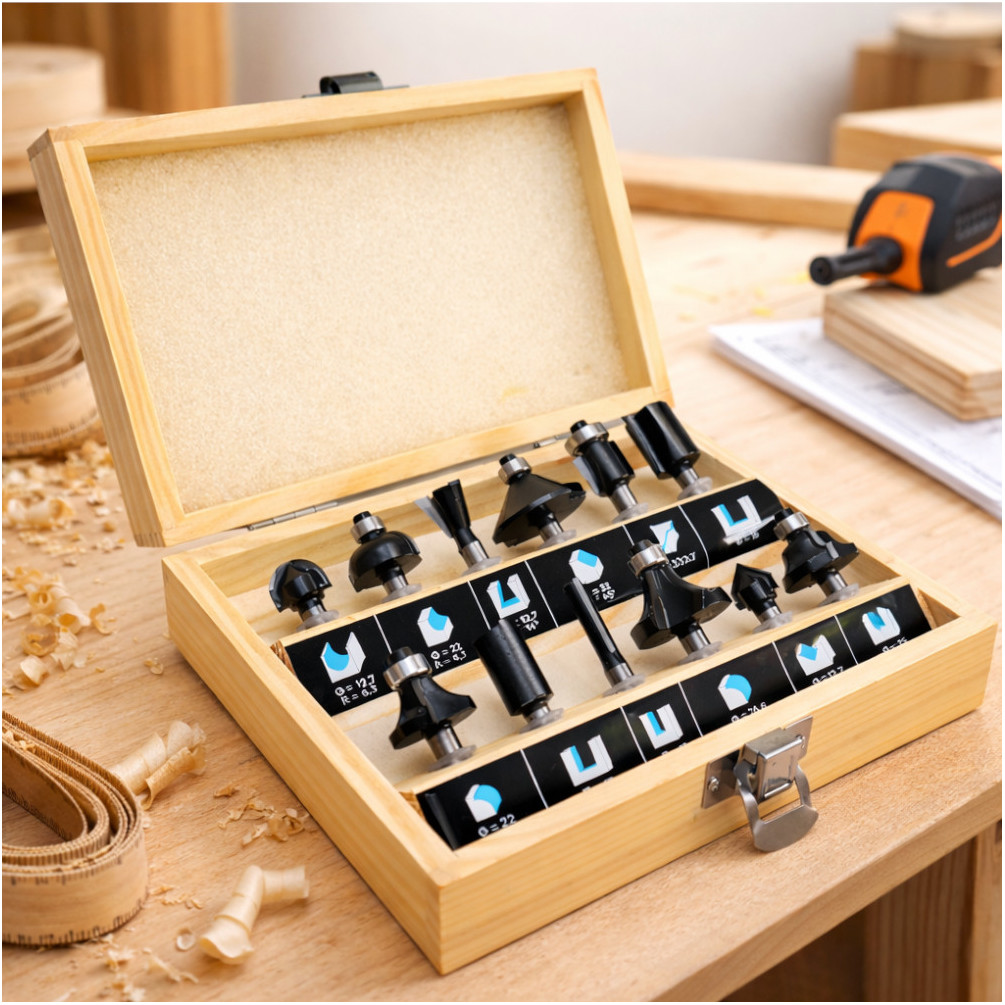 Coffret 12 Fraises Défonceuse Carbure Queue 6 mm - Assortiment Mèches Défonceuse Bois et Panneaux - OMNIVOR