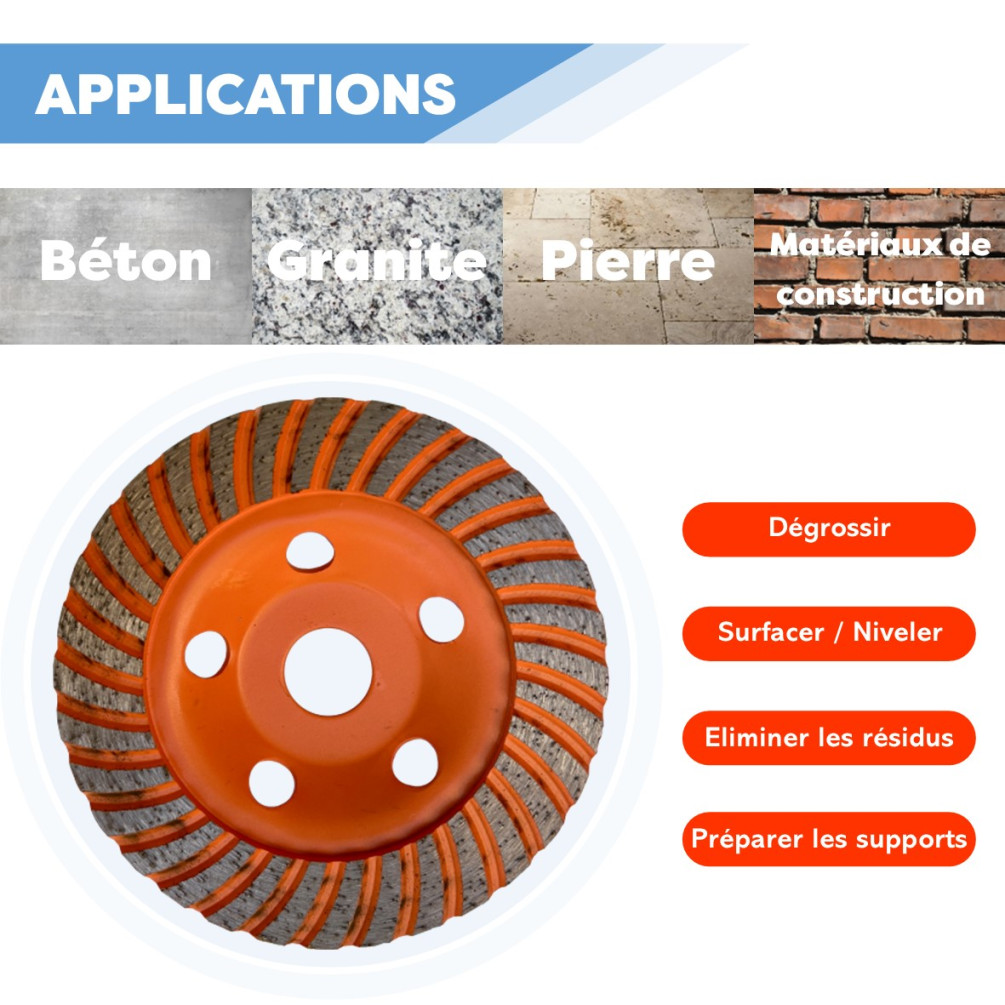 - Domaines d’utilisation : Béton, granit, pierre, matériaux de construction