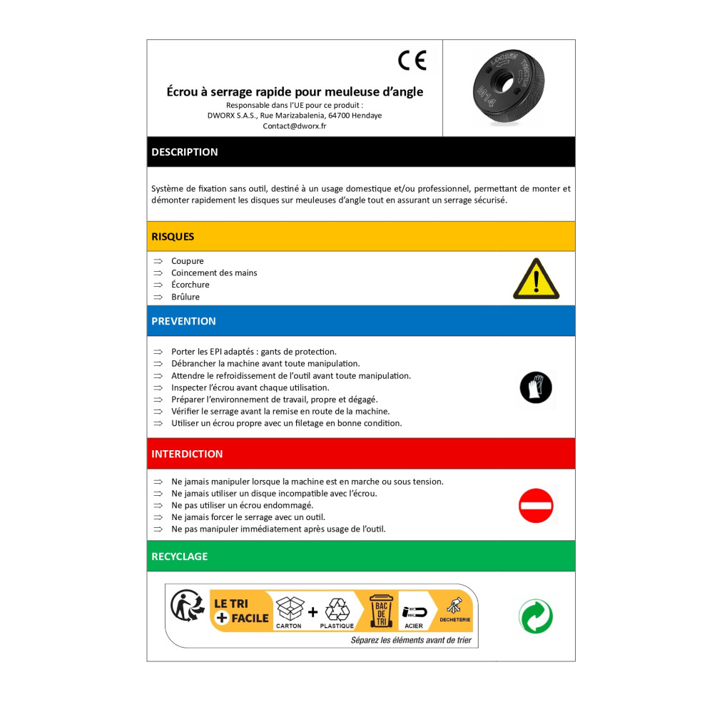 | Personne responsable UE | DWORX S.A.S. Rue Marizabalenia 64700 Hendaye contact@dworx.fr |