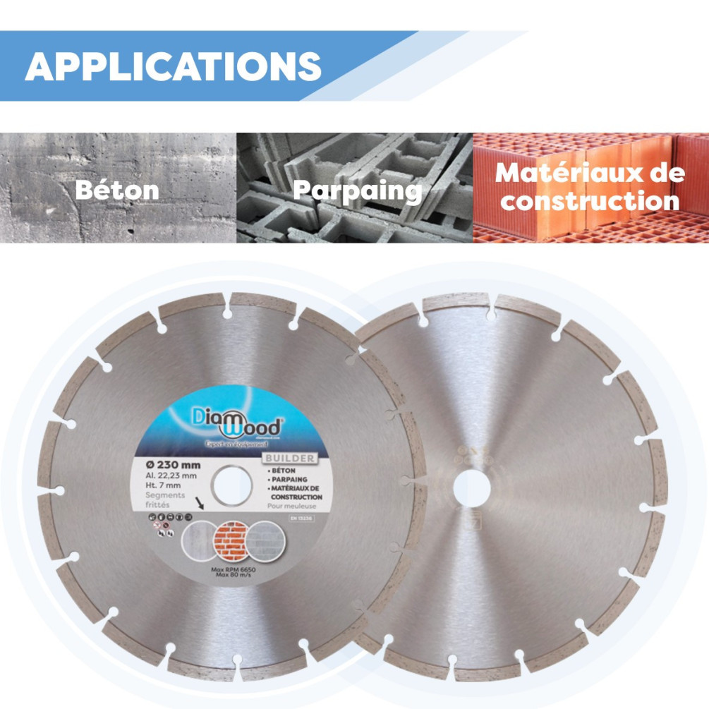 Disque diamant BUILDER D. 125 x Al. 22,23 x Ht. 7 mm - béton, parpaings, matériaux de construction - Diamwood